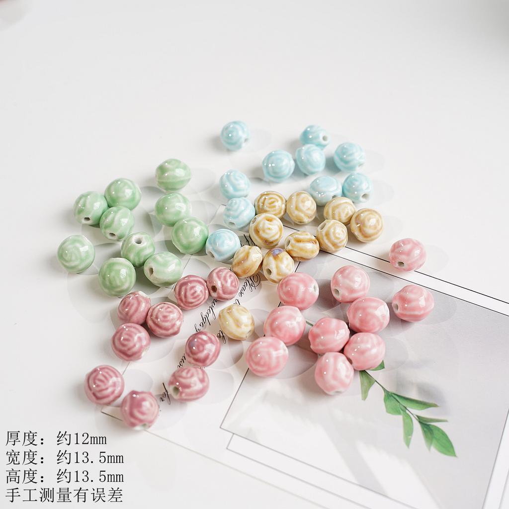 12Mm rose ball ceramic beaded accessories Jingdezhen bracelet necklace accessories DIY handmade materials wholesale high temperature