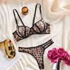 Bar set leopard print lace underwear sexy transparent ultra-thin big breasts show small gathering bra set