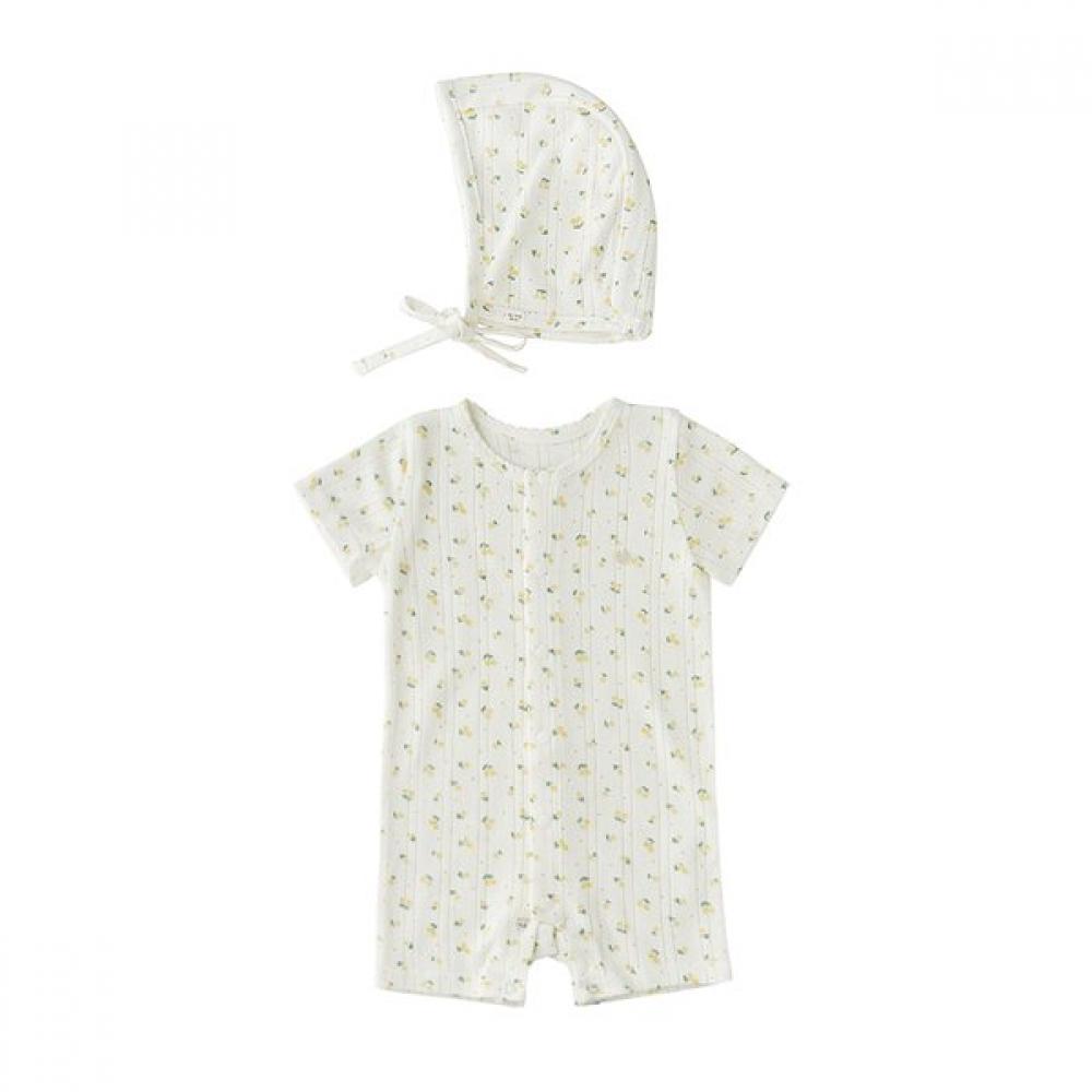 The Minkmew Petit Fruit SET Bodysuit (36370-040-03) features a long thigh-length bodysuit and hat set from the COZY COTTON line. Made from environmentally friendly modal cotton yarn woven in a heart pattern, it provides comfort and exceptional breathability for babies. The product is accentuated with a fruit pattern for a charming touch.