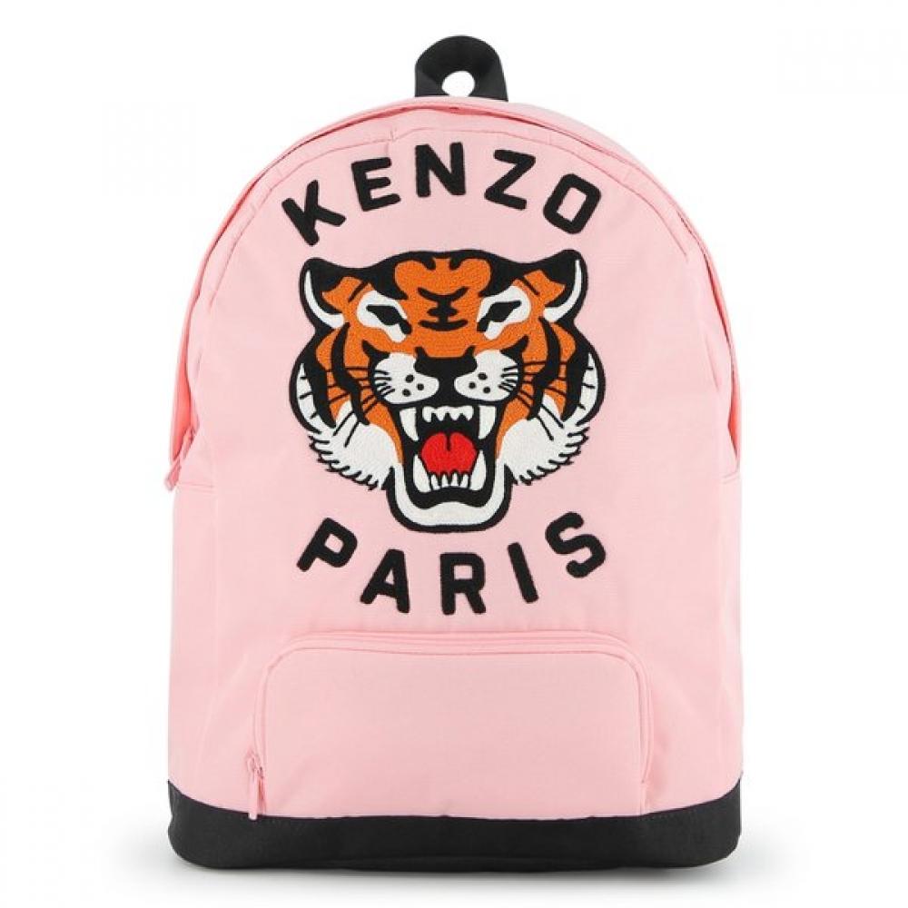 KENZO KIDS Z265AHAR11_PNK is an embroidered backpack made from canvas material. It features the 'KENZO Garden' design, with brand prints and tiger logo embroidery. Optimized for storing documents and notebooks, it includes padded back support for a comfortable wearing experience for children. It has a front pocket and an internal pocket for keeping belongings neatly organized.