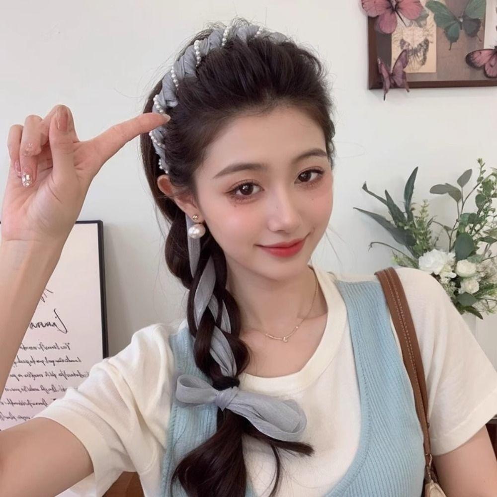 U Shape Satin Fabric Hair Bands Adjustable High Top Headpiece Non Slip Pearl Hair Band Tooth Comb Fabric Ribbon Hair Hoop
