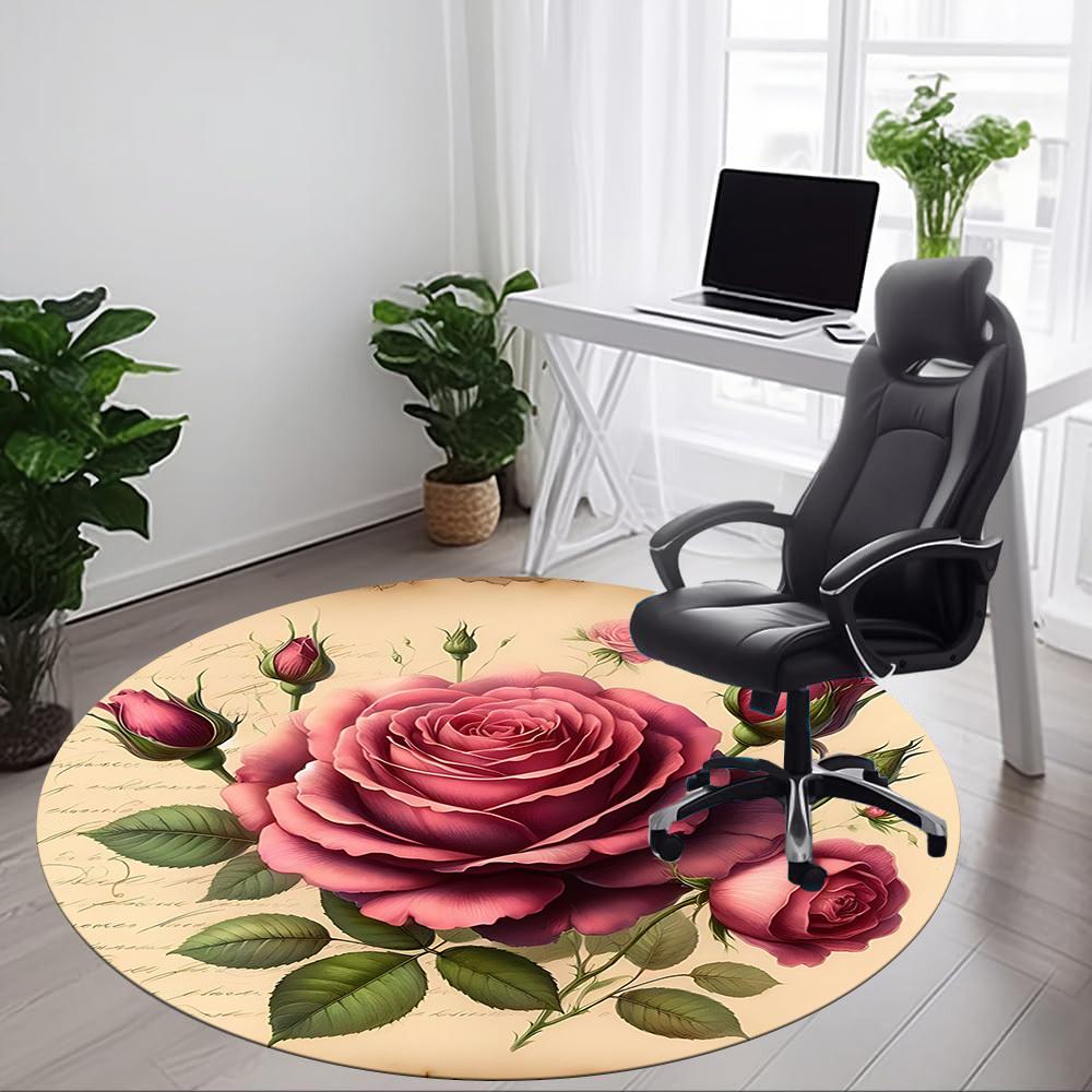 1pc Rose Bouquet Carpet for Office Non-Slip, Round Carpet, Soft & Comfortable, Carpet for Office, Lightweight Round Floor Mat