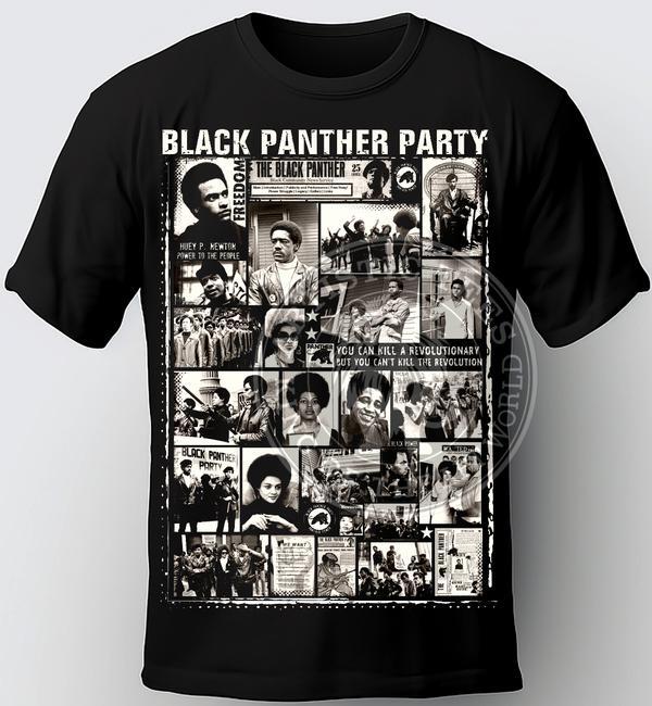 BLACK PANTHER PARTY COLLAGE T-SHIRT. COLOR BLACK. Black History T shirt. Unisex T-Shirt