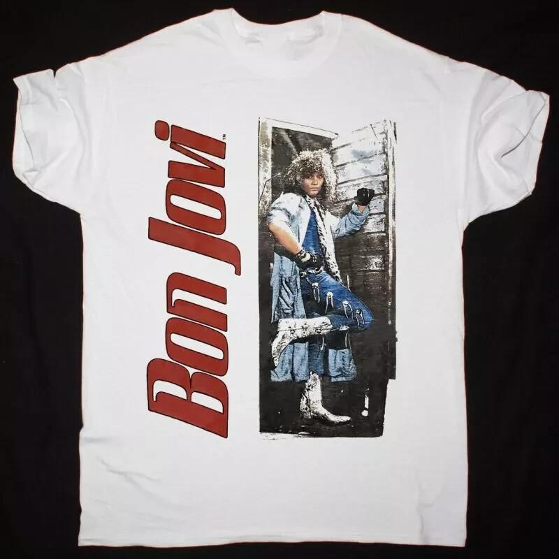 BON JOVI SLIPPERY WHEN WET TOUR Cotton White All Size Unisex Classic Shirt Unisex T-Shirt