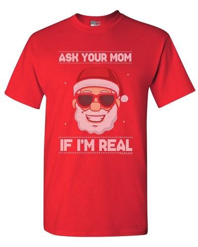 Ask Your Mom If I'm Real Santa Ugly Christmas Funny Adult DT T-Shirt Tee Unisex T-Shirt