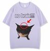 Funny Cat No Brain Meme Graphic TShirts Men Women Humor Joke Vintage Personality Tshirt Loose Cotton Casual T Shirt Streetwear