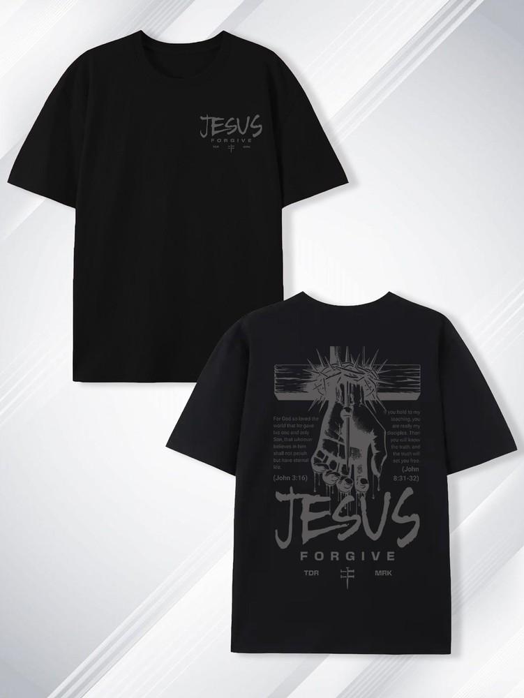 Jesus & God Themed Cotton T-Shirt - 220g Double-Sided PrintRound NeckShort Sleev Unisex T-Shirt