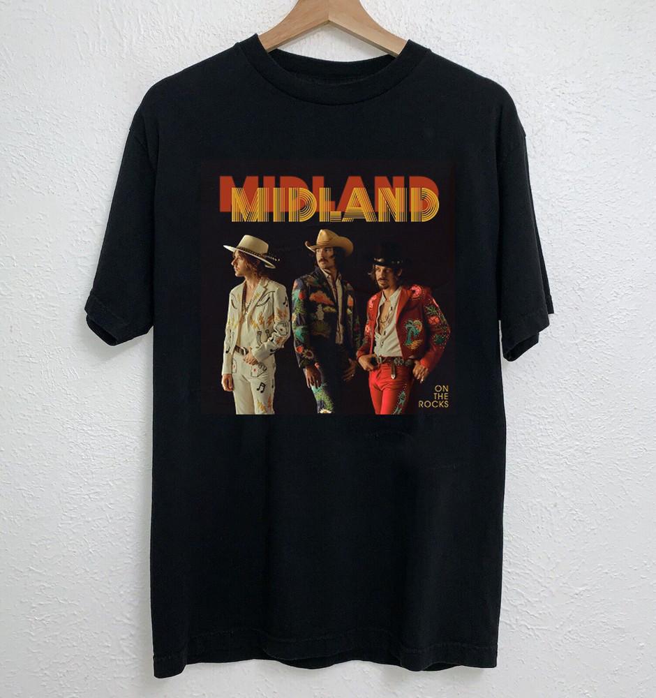 NEW Midland band - On the Rocks Short Sleeve Black All Size Shirt Unisex T-Shirt