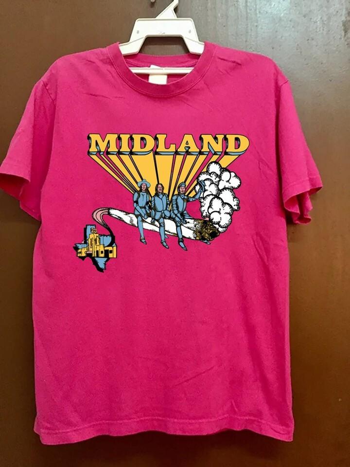 NEW Midland Country Band Short Sleeve Cotton Pink All Size Shirt Unisex T-Shirt