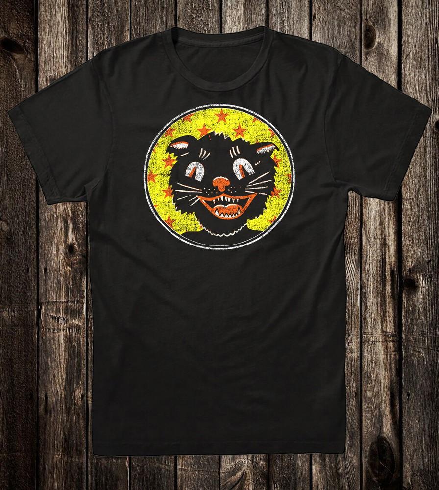 Retro Halloween Tee T Shirt Vintage Art Goth Tattoo Spooky Black Cat Carnival Unisex T-Shirt