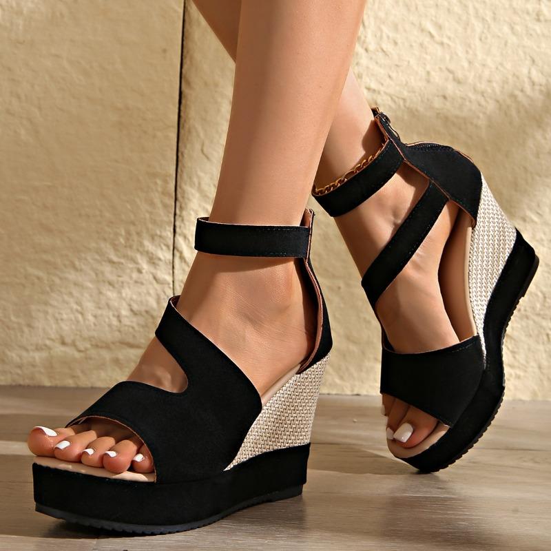 Pegged Heels, New Style, Large Size, Peep-toe Sandals, Women's Thick-soled Shoes, Platform Heels