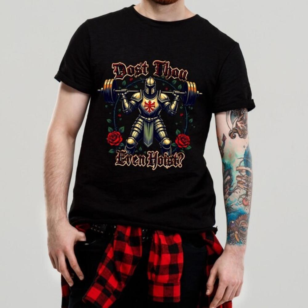 Funny Dost Thou Even Hoist Gym Shirt Workout Tee Deadlift Meme Tshirt Medieval Knight Weightlifting Tshirt Mens Fashion Cotton T