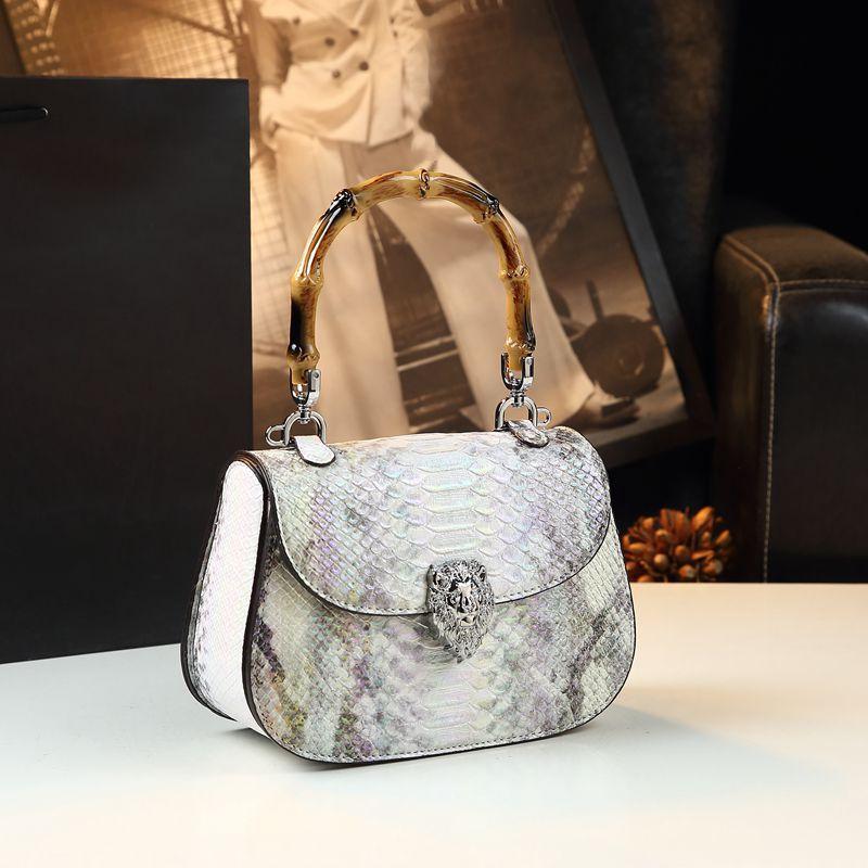 Advanced Snake Patterned Leather Hand-held Bamboo Bag for Women, Fashionable and Versatile, Personalized Single Shoulder Crossbody Small Bag