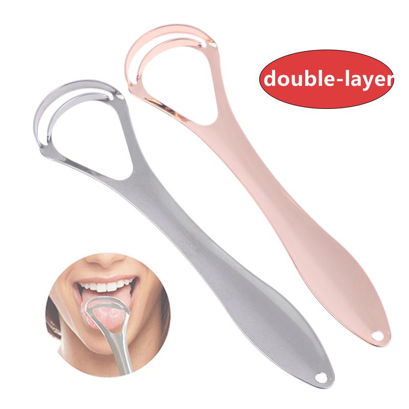 1Pcs Portable Stainless Steel Tongue Scraper Double Layer Design with Non-Slip Handle Reusable Oral Hygiene Tool for Travel