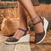 Women'S Wedge Heel Platform Fabric Shoes With Closed Toe Cutout Design Strap Tan Sandals For Women Dressy Sandals For Women Size
