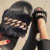 Fashion Beach Women'S Flat Chain Crystal Sandals Slippers Shoes Plush Bear Slippers For Women Foldable Slippers For Women