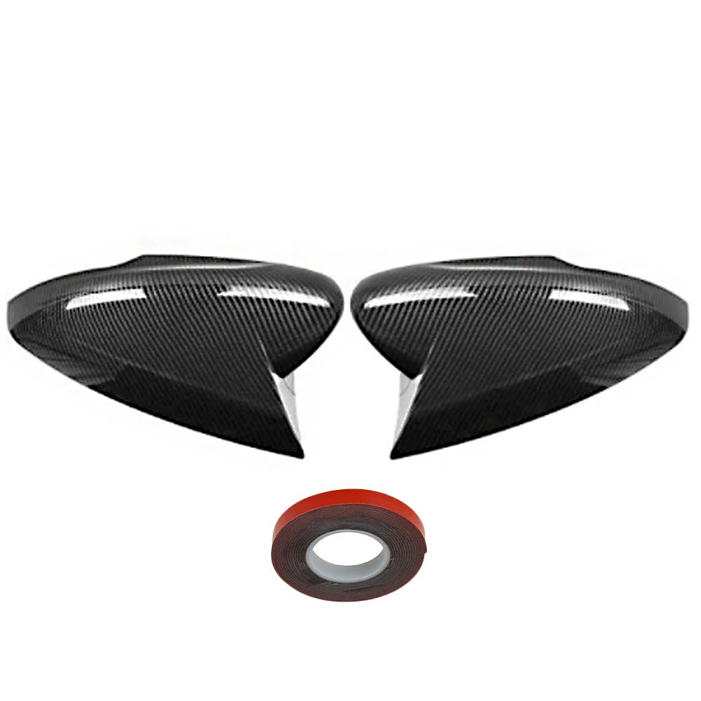 2Pcs Car Rearview Side Mirror Cover Caps Trim Carbon Fiber Glossy Black OX Horn For Ford Mustang Mach E Mach-E