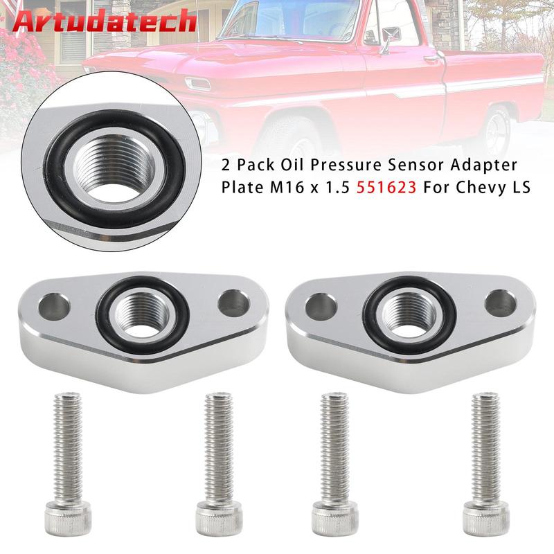 Artudatech 2 Pack Oil Pressure Sensor Adapter Plate M16 x 1.5 Thread 551623 For Chevy LS Gen 4 LS Engines- Billet Aluminum
