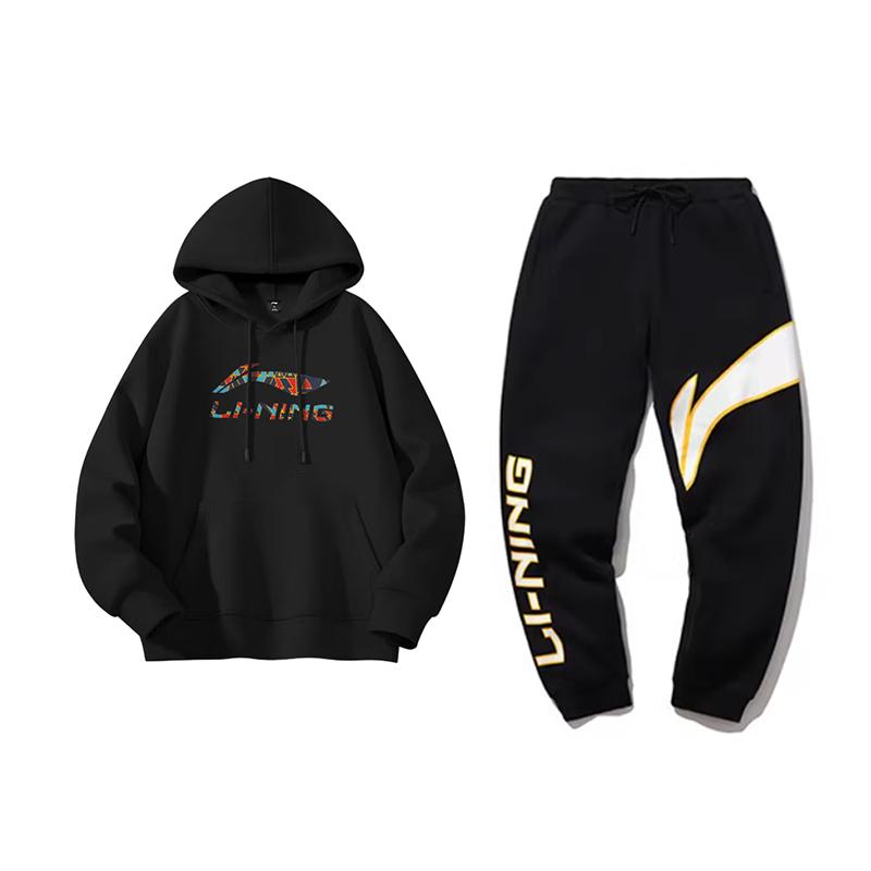 Li Ning Big Logo Letter Print Fashion Trendy Cotton Fleece Warm Hooded Pullover Long Sleeve Sweatshirt Casual Sports Suit YWDVCA5-3+YKLV225-1