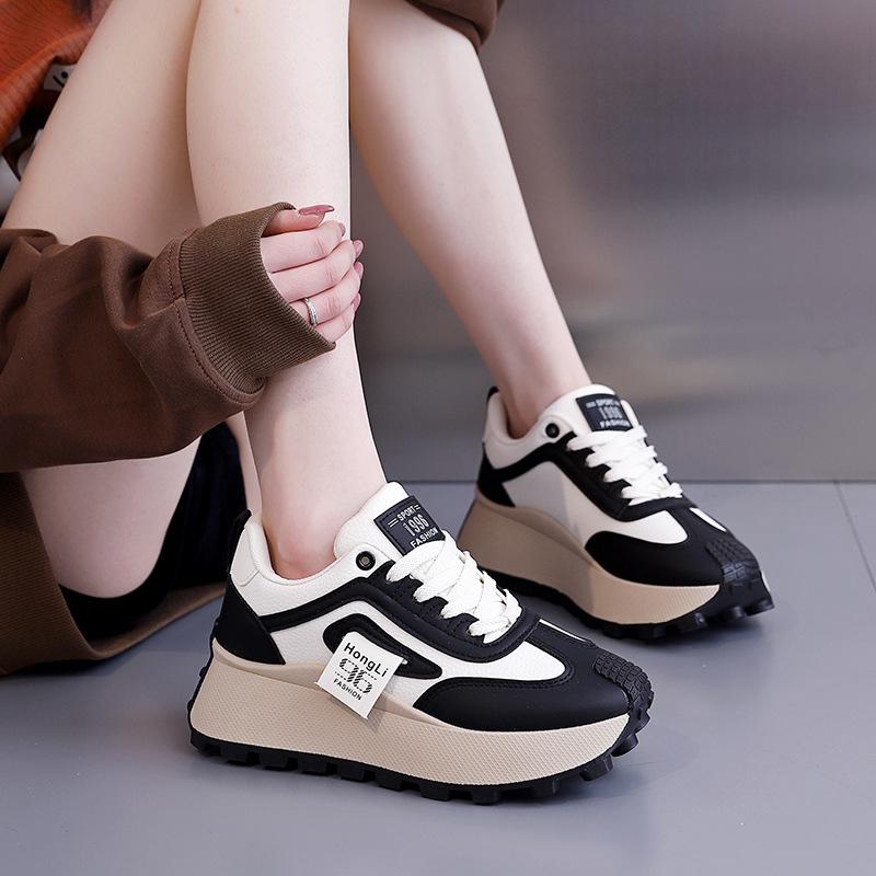 Spring platform versatile dad shoes women's fashion simple height increase casual single shoes niche Harajuku small white board shoes