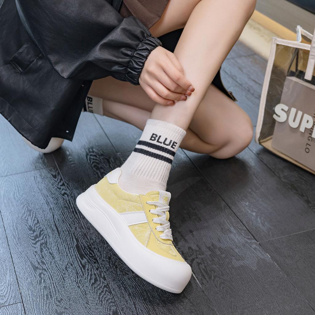 Leather women's spring new ugly cute big head board shoes platform heightening shoes fashionable versatile casual shoes