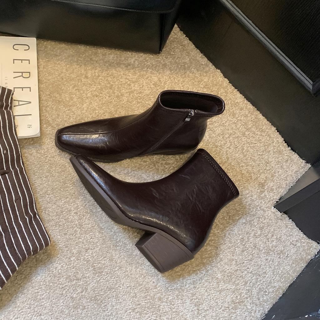 Pointed Chelsea boots women's new autumn and winter warm thickened velvet French small short boots thick heel retro thin boots