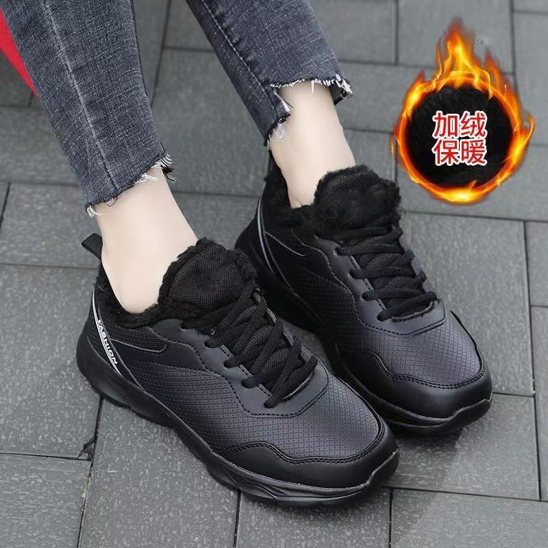 Brand women's shoes autumn and winter sports shoes leather waterproof and lightweight running shoes women's black soft-soled casual non-slip