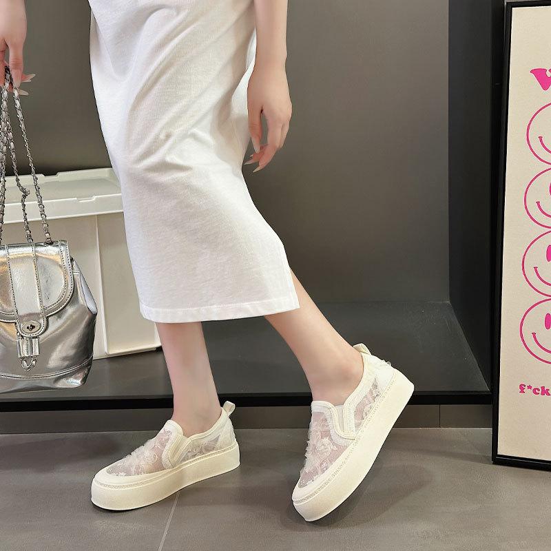 Fisherman shoes women's lace embroidery sequins casual single shoes summer new mesh breathable
