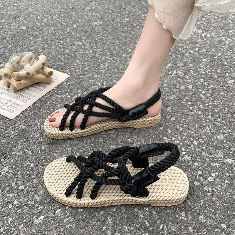 European and American hemp rope sandals woven Roman beach sandals flat bottom