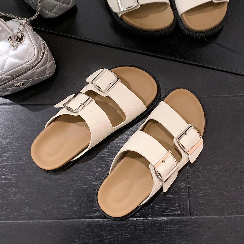 New thick-soled slippers women's round head with square buckle versatile casual beach comfortable cool slippers