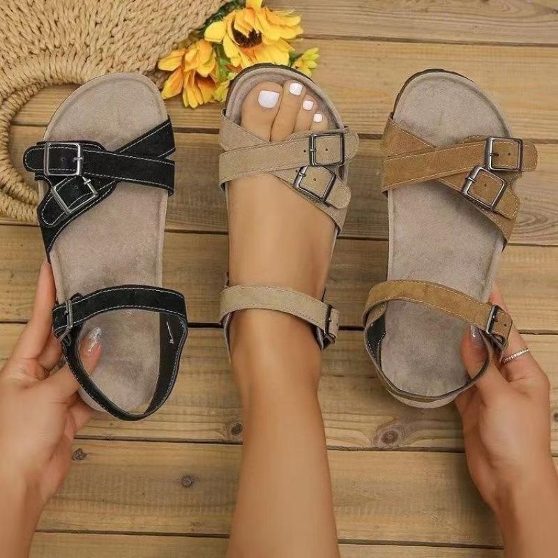 Outer size large size Birkenstock sandals New cross metal buckle platform sandals in summer