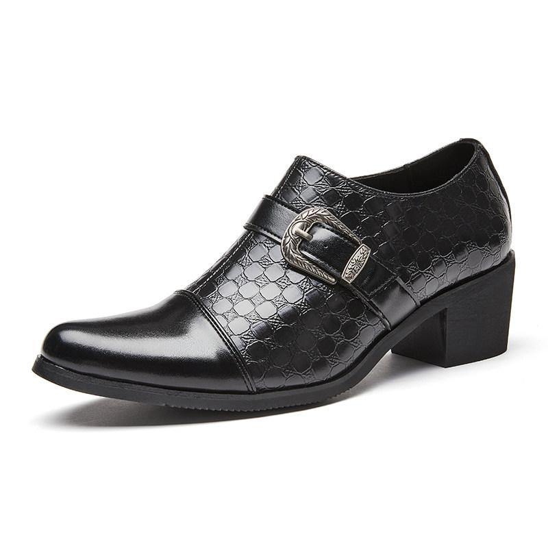 Leather shoes new autumn buckle business retro style foot cuban shoes large size high heel dress casual shoes