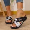 Color matching slope heel thick bottom cool slippers summer new open-toed European and American large size one-word beach slippers