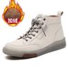 Spring leather soft bottom flat bottom sports casual board shoes high top beef tendon sole shoes low heel non-slip