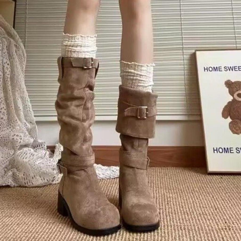 Retro British style but knee thick heel boots new summer height increase and thin knight boots