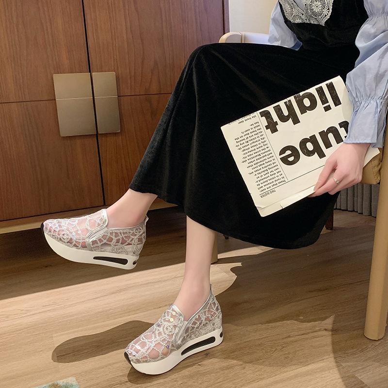 Mesh breathable casual shoes summer new inner height increase student shoes lazy mesh platform shoes