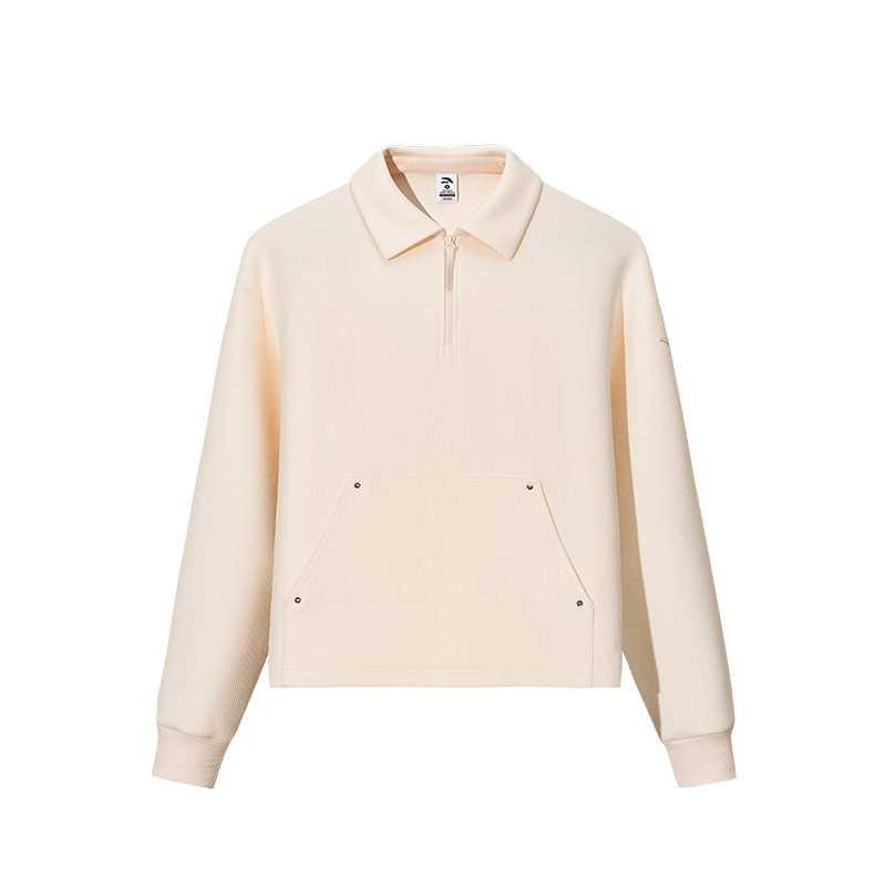 Anta Solid Color Polo Neck Pullover Long Sleeve Sweatshirt Women sweatshirt Corn-White 162617714-1