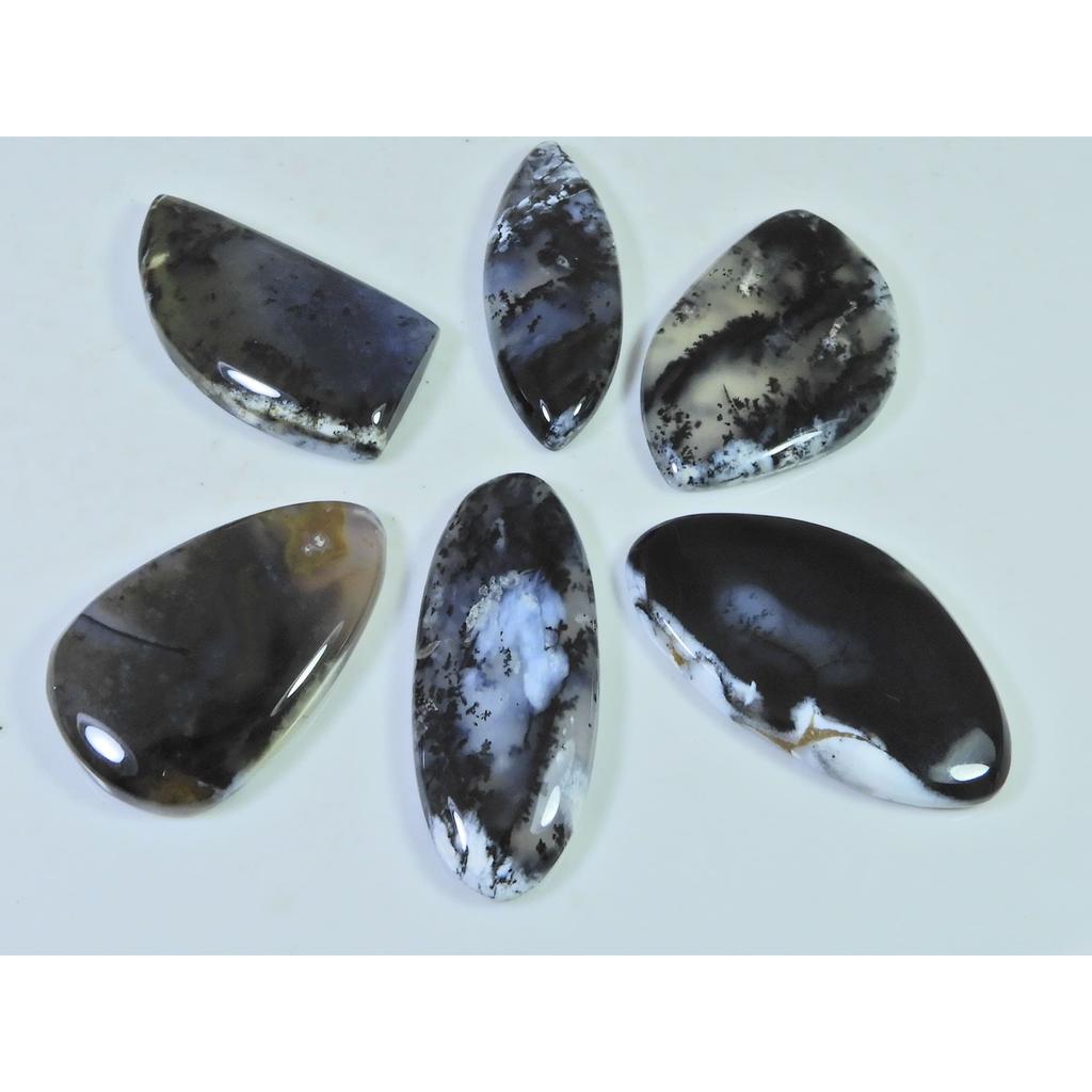 194Cts. Natural Dendrite Opal Agate Mix Cabochon Loose Gemstone 06Pcs Lot C-1317