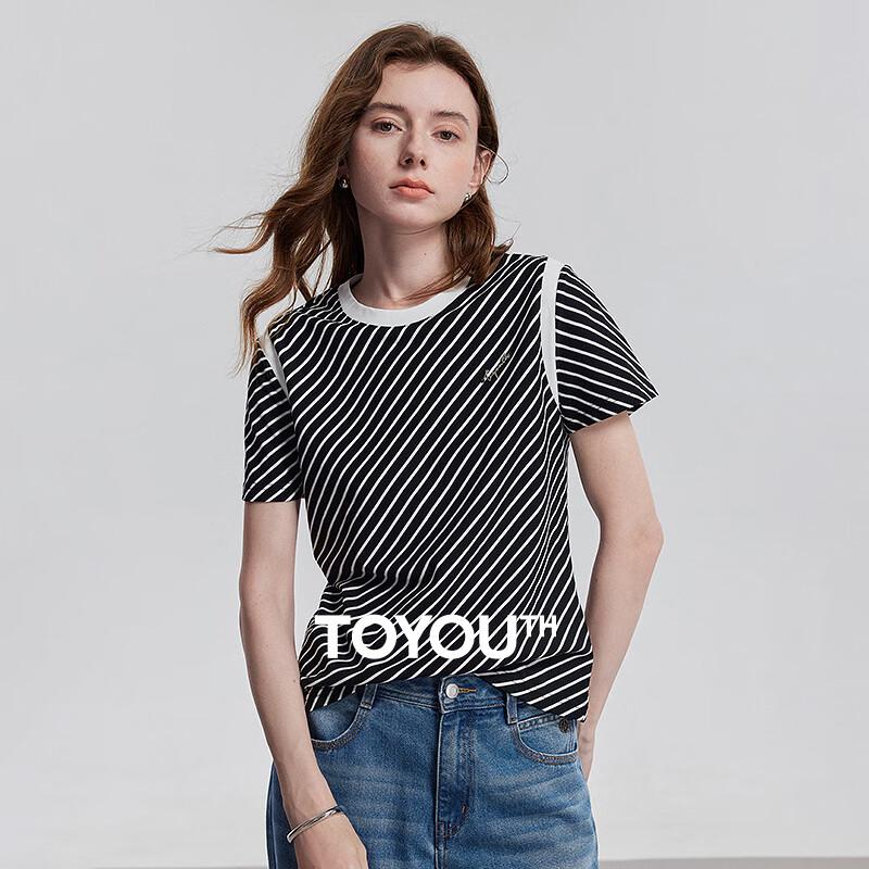 Chuyu 2025 Summer Striped Short Sleeve Cotton T-Shirt