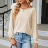 Women's Fashionable Color Loose Round Neck Long Sleeved Pullover T-shirt Top