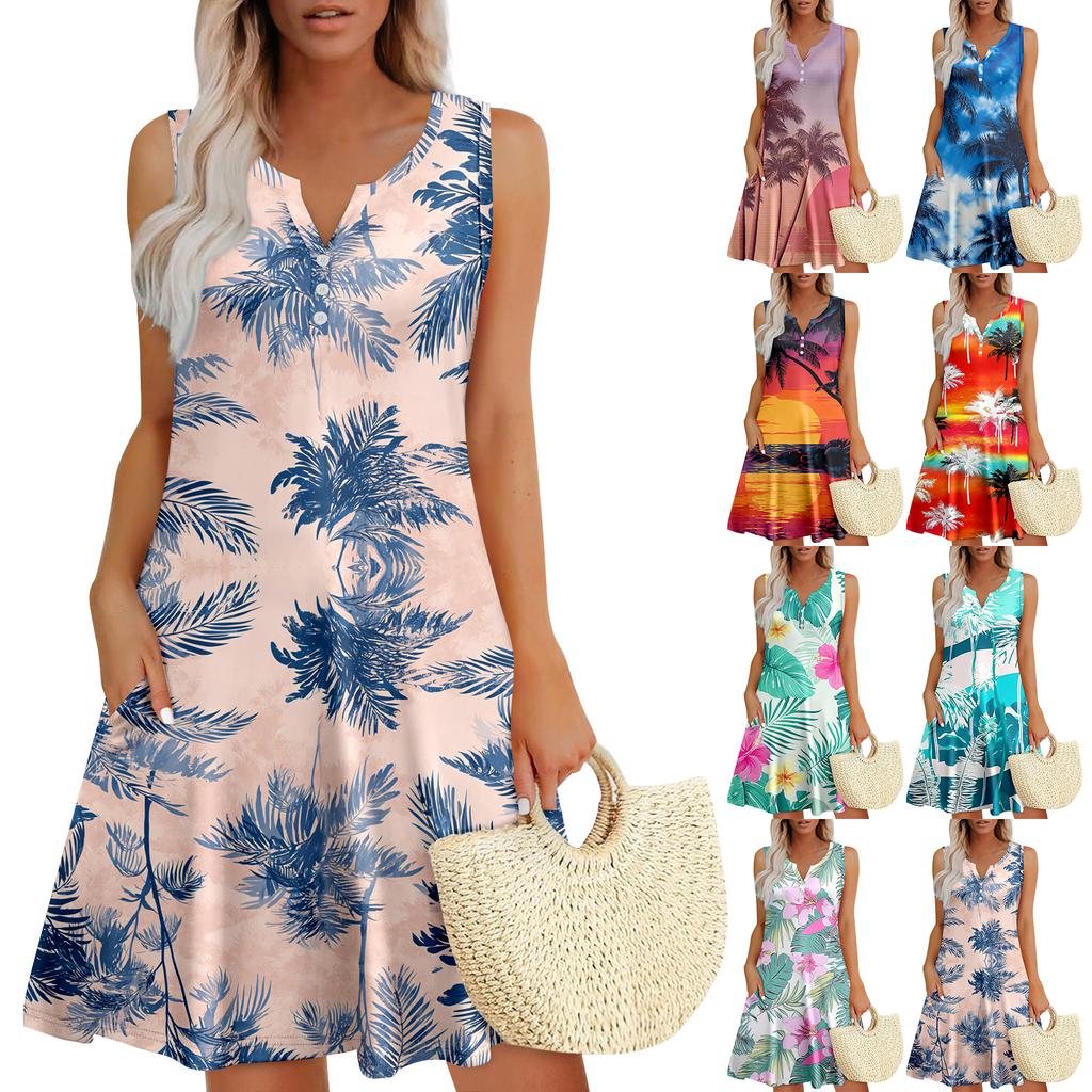 Womens Summer Dresses Loose V Neck Sleeveless Sundresses Dress With Pockets