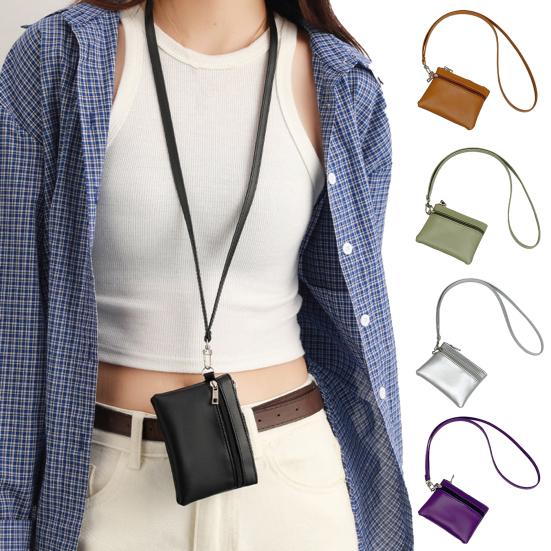 Introducing the coin wallet, crafted from high-quality faux leather material for durability and wear-resistance. This versatile wallet features a convenient rope for easy portability, allowing you to hang it around your neck or use it as a stylish necklace accessory. The zipper closure ensures secure storage while providing easy access to your coins and cards.