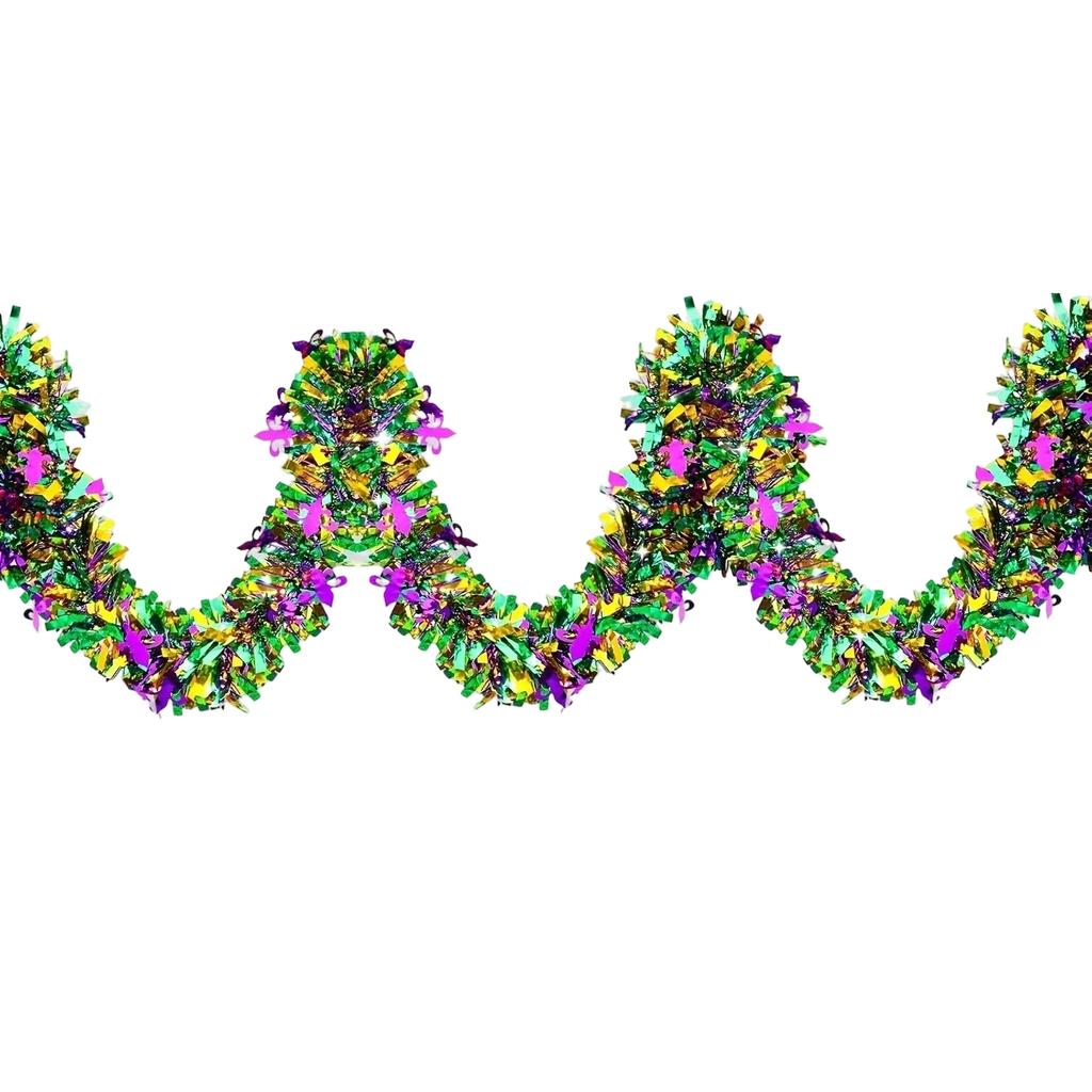 Garland Decorations,Green Gold Purple With Fleur--Lis Chunky Glittery Holiday Hanging Decorations For Carnival Parades Car Party Suppl