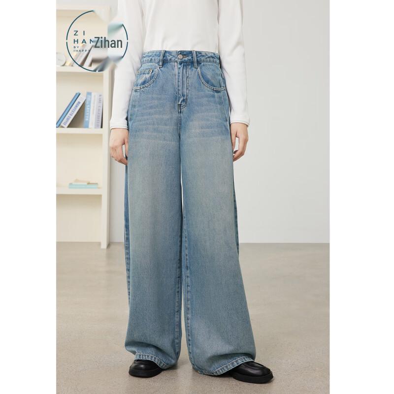 ZIHAN Women's Retro High-Waist Wide-Leg Denim Jeans