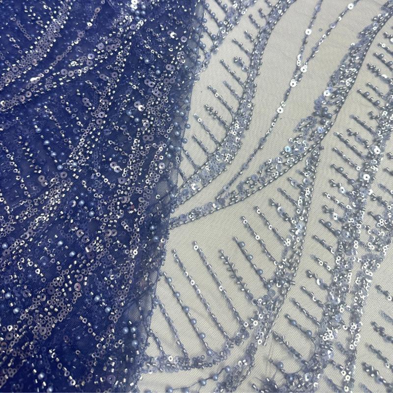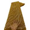 1 yard Mesh Lace Fabric With Bead Sequin Chain Stitch Embroidery for Dance Wedding Dress Patchwork Material Tulle Fabric Golden