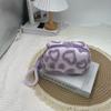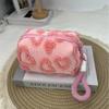 Plush Makeup Bags with Handle Soft Travel Cosmetic Storage Bag Portable Love Print Organizer Pencil Case Cute Clutch Pouch