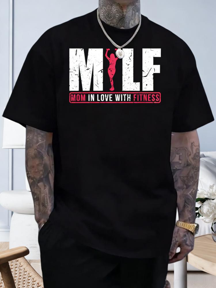 SpringSummer MILF Mom in Love with Fitness Pattern Letter Printed Cotton Tshirt Fashion Casual Short Sleeve Round Neck Tshirt