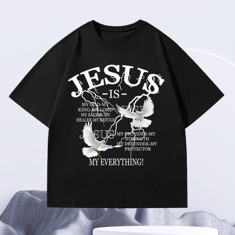 2026 SpringSummer Hot Selling New Jesus and Peace Dove Printed Couple Short Sleeve Casual Loose Round Neck Cotton Tshirt Top