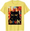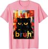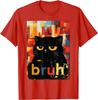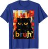 Bruh Black Cat Funny Meme Graphic TShirt Casual Short Sleeve Cotton Crew Neck Tee