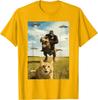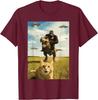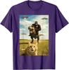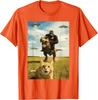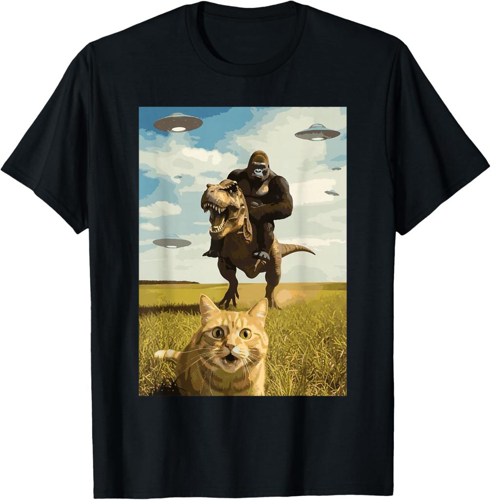 Gorilla Riding T Rex with Cat UFO Meme Graphic Tee Funny Casual Crewneck TShirt for Men